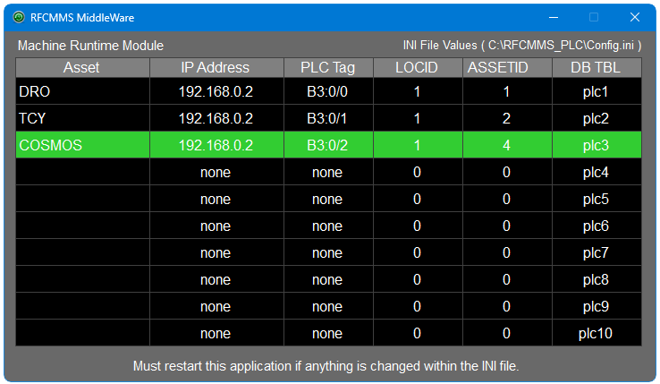 With the RFCMMS Middleware application, you can get the live starts and stops of your machines. To learn more about this feature, select the link to the left for more information. A report has been created to show "Starts and Stops", Total Runtime, Daily Runtime, Weekly Runtime, Average Runtime and what other machines are currently running. This report helps to make informed scheduling decisions.